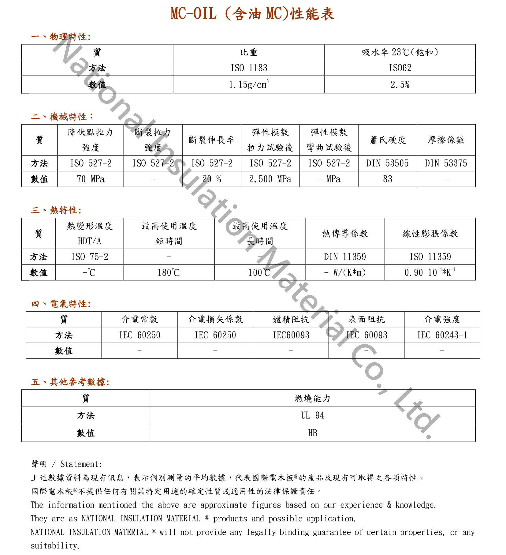 MC-OIL (oil MC) product manual: ★ 1. Plate: yellow / green 2. Round bar: yellow / green ★Features:Excellent slidability, high corrosion resistance, good rigidity, good toughness, wear resistance, light weight, excellent machinability, dimensional stability, noise absorption and vibration. Oil-filled grade with improved wear resistance. This grade is designed for wear parts that require high speed repetitive motion at low loads. ★Use: Various types of bearings, wheels, gears, sprockets, wear pads, etc.