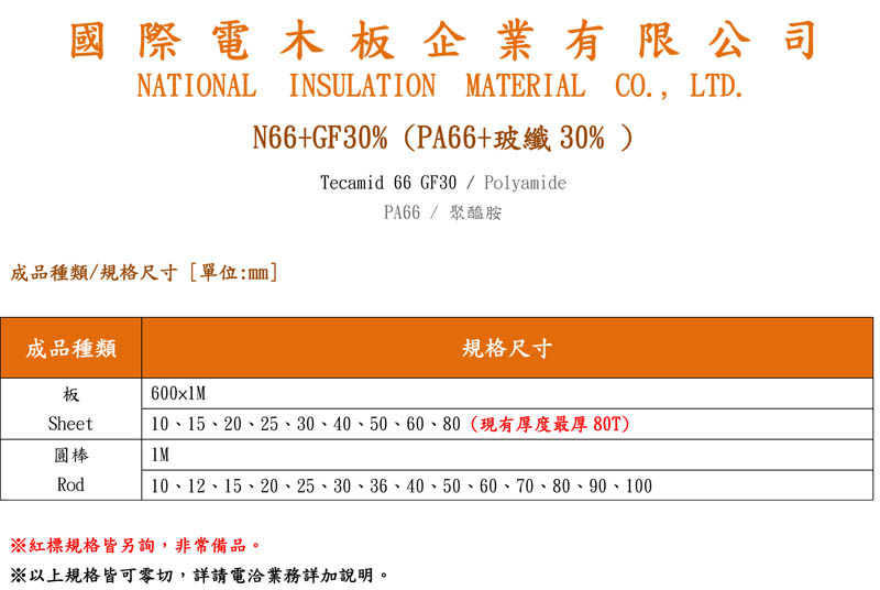 Compared with the general N66, this material with 30% more glass fiber increases the strength, rigidity and deformation resistance, and the maximum heat distortion temperature is higher than that of the general N66. In addition, the main characteristics of N66+GF30% are: high rigidity, oil resistance, lubricating oil and fuel oil, good wear resistance, high strength, good dimensional stability and good weldability and adhesion.