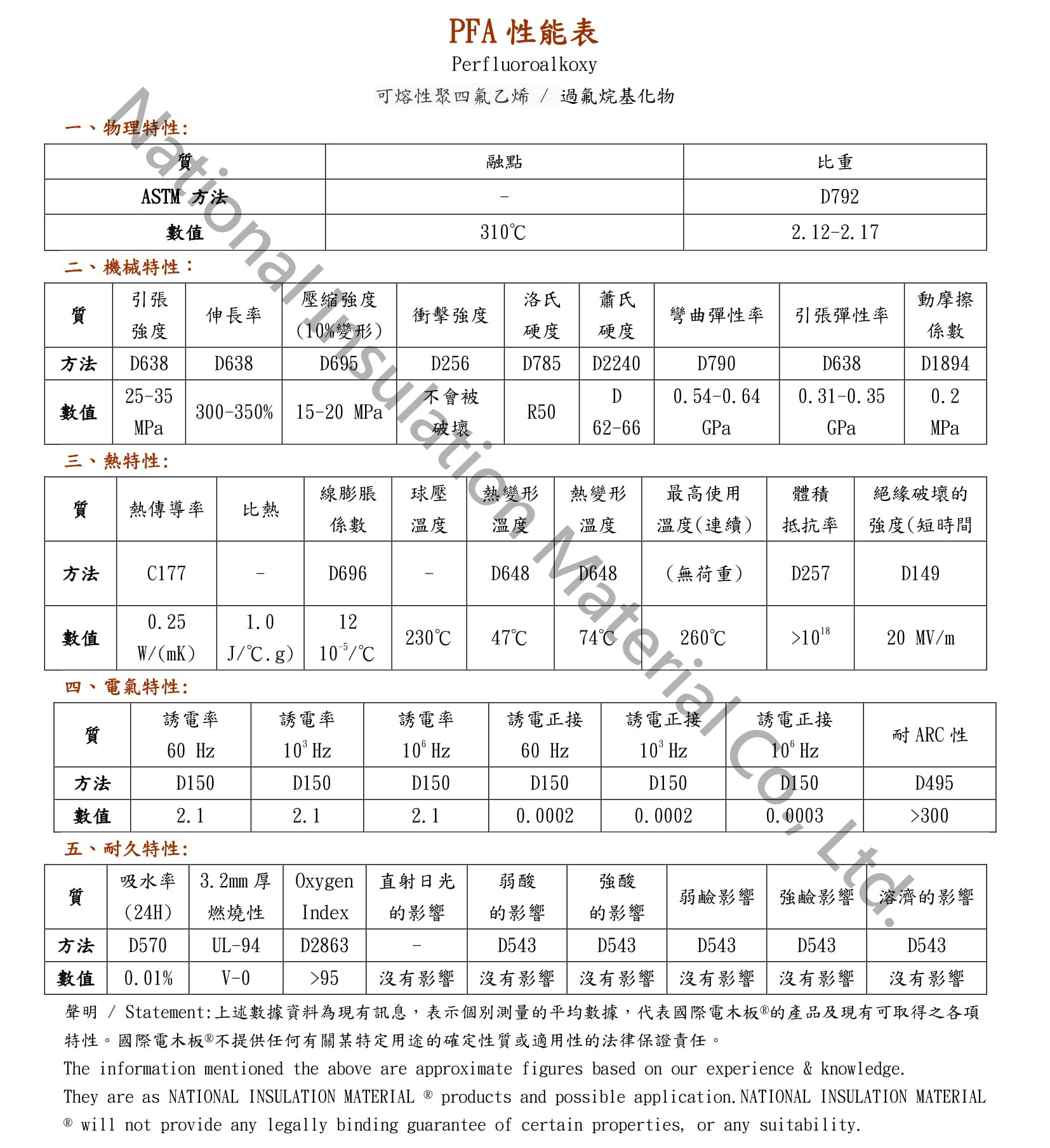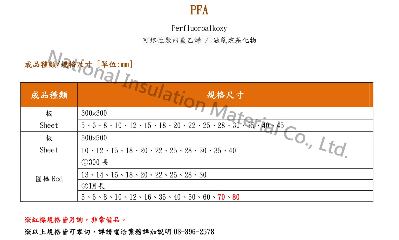 PFA Perfluoroalkoxy Fusible polytetrafluoroethylene / perfluoroalkylate product manual: 1. Plate: white transparent 2. Round bar: white transparent ★Characteristics:The attraction between different kinds of molecules is very small, so it has excellent inactivity and resistance/resistance to chemicals and solvents. It is almost all resistant to all chemicals, and has higher impact resistance and toughness than PTFE. The non-stick coating melts and flows like a FEP during baking to form a non-porous film. The advantage of PFA is that it has a higher continuous use temperature of 260 ° C and stronger toughness. It is especially suitable for use inthe field of anti-adhesion and chemical resistance under high temperature conditions. ★Usage: It is widely used in electrical, electronic, chemical, aerospace, machinery and other industrial sectors as well as cutting-edge science and technology and defense industry departments such as rockets, missiles and aerospace.
